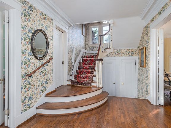 This classic Georgian home sits on a large private homesite, in the heart of historic Forest Park! Welcome friends and family in the large formal entry that leads to the formal living room with original built in bookcases and fireplace. The sunroom or family room is wrapped in natural light and features a barrel vaulted ceiling. The oversized formal dining room offers a bay window and original bi-fold glass doors. Formal areas are perfect proportions and trimmed with heavy millwork. Kitchen and breakfast room (with butlers pantry) complete the main level. The graceful staircase leads to floors 2 and 3. The spacious bedrooms (some with walk in closests) feature original hardwood floors. Third floor playroom is perfect flex space ,even the stair landing can be used as a home office. Custom details so rarely found, make this home truly special. Guest house over the 2 car garage. Excellent storage space. This is the first time offered for sale in 46 years. Beautiful tree lined street.