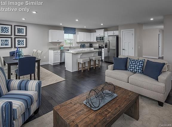 New construction, craftsman style, one level ranch with open floorplan and spacious great room perfect for entertaining. 3 bedroom, 2 bath home with separate dining room that could be used as flex space. Home features luxury vinyl plank flooring, ceramic tile in baths and granite countertops in kitchen. Stainless steel refrigerator, range, dishwasher, microwave included. Wifi enabled thermostat, gas heat, vinyl siding and 2 car garage. Yard maintained by HOA. Convenient location only 2 miles from I-85 and 73, and minutes to Harris Teeter, Afton Village, Super Target, Concord Mills and I-485. Community pool and Cabarrus County Schools. $4,000 towards closing costs with the use of our preferred lender. To be built.