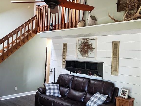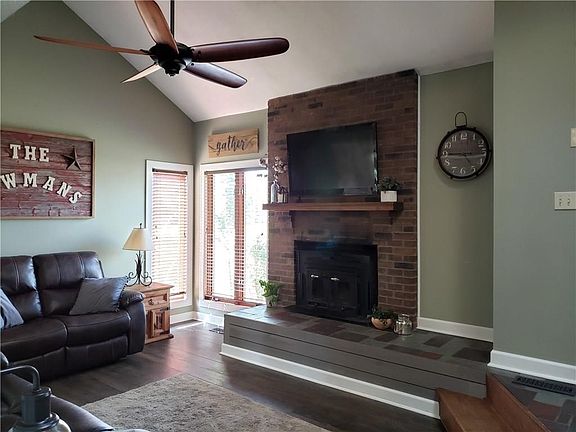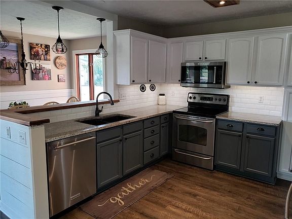 Beautifully updated throughout, this home has lots to offer. First floor features living room with cathedral ceiling and brick fireplace. Gorgeous kitchen with loads of cabinet space, granite countertops, tile backsplash, stainless steel appliances and breakfast bar open to dining area. First floor half bath. Second floor features spacious owner suite with walk in closet and full updated bath, two additional bedrooms both with large closets and updated second full bath. Partially finished basement for additional living or rec room space, large laundry room and additional storage area. Updated flooring, shiplap and barnwood throughout the home for added character and charm. 26x16 covered rear porch is absolutely phenomenal with vaulted wood ceiling and sunken hot tub perfect for relaxing or entertaining with adjoining large open deck area. Outdoor features include utility building with porch, storage shed/chicken coop and just under half an acre.