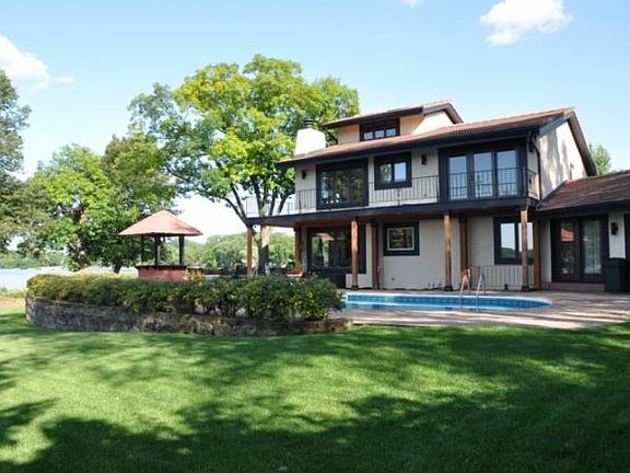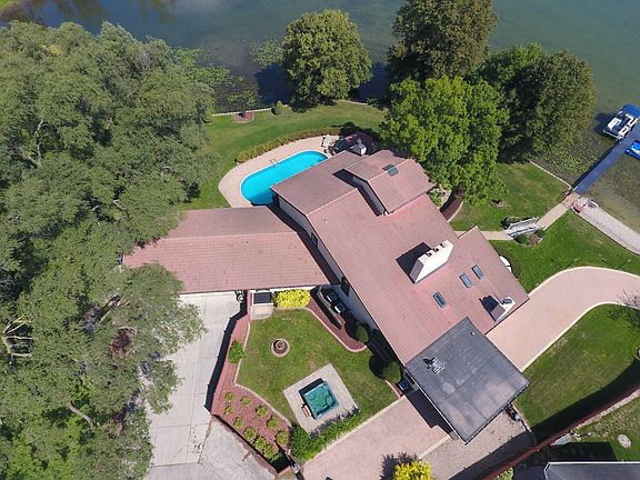 One of a kind home on prestigious Browns' Lake!This is truly an entertainers' dream come true with stunning design elements at every corner in this 4 BR 5.5 BA home, located on almost 300 ft of prime lake frontage.Enjoy exhilarating sunsets and sunrises from your private terrace offering an in-ground pool,outdoor bar area,and lavish gardens and mature trees.Entertain in the open concept great room with a wall of California stone surrounding your FP,a gourmet kit with granite counters,and butler pantry.