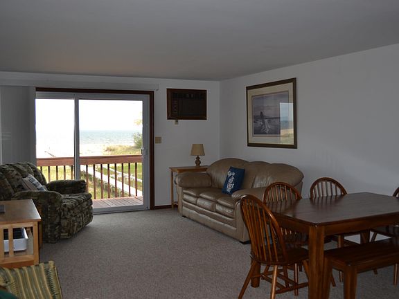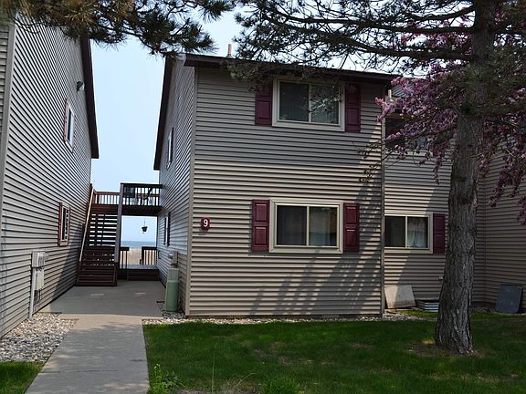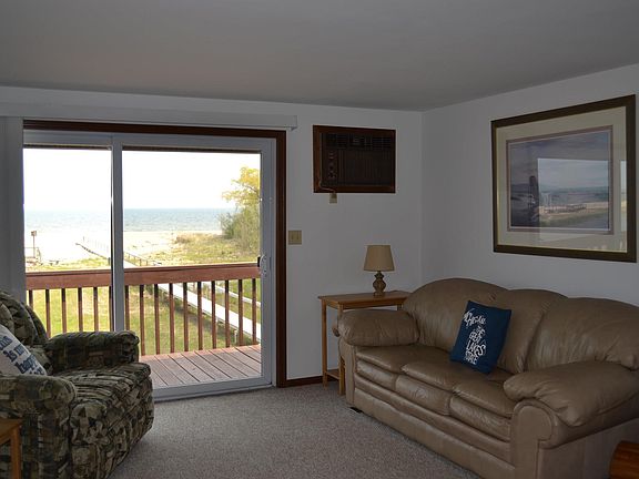 Enjoy Condo Living at an Affordable Price ~ 800' of groomed sandy walkable beach along the Lake Huron shoreline. Small pond in the middle of complex adds a little bit of charter. Two walkways lead to the lake for easy access. One bedroom, 1 full bath, upper unit, with a 1 car garage. Perfect! Unit is very clean and ready to occupy. Comes with all furnishing's as viewed, dishes, towels, 2 twin beds with newer mattress. Yes, a Keurig coffee maker included. Enjoy care free living with super view overlooking Lake Huron and the mouth of the AuSable River from your upper level Unit. Association Dues are only $130.00 monthly. On site laundry facility.