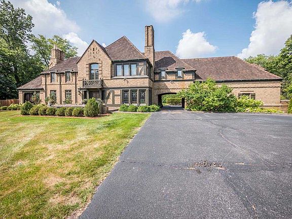 The Southwood Park neighborhood is an established, historic community with charming homes on large lots. Foster Park is one of Fort Wayne's treasures, with a 255-acre park with four miles of riverbank, a two-mile loop trail, golf course, pavilions, swings and play equipment, tennis courts, trails and incredible gardens. The front of this 9,700+ square foot, Tudor-style home has brick, stone and several leaded glass windows. With 1.4 acres of lush grass, beautiful landscaping and mature trees, this great estate feels even larger and more open. Upon entering the covered front entrance, the original hardwood floors and marble finishes keep with the period of the estate. Off to the left, the living room has a gas fireplace and tall windows, letting in lots of sunlight. One set of French doors leads to an enormous dining room that can accommodate any shape of table and easily host 10-12 people. Just to the left of the foyer sits a private study/library. This room has amazing built-in shelving. The remodeled kitchen, with solid surface countertops, center island and stainless steel appliances, has the same beautiful hardwood flooring that is throughout the home. Adjacent to the kitchen, there is a "mudroom" area that has an entire room of storage cabinets and built-in drawers, along with a built-in combo W/D. The main staircase in the front foyer is on-trend with the 1930's and is a unique, designer masterpiece with a blend of wood and iron. The master suite, along with four additional bedrooms, is on the second level. Each bedroom has a private full bathroom. There is also a recreational/television room on this upper level. Keeping with the historic details of the 1930's, the finished basement has curved door wells. The third fireplace is located in the living area, and there is a kitchenette with double sink, plus plenty of room for ping-pong, billiard table and foosball table. The bonus areas in the basement provide wonderful storage space and a workout area. The three-car garage faces the side, lending to the curb appeal. There is a double garage door and a single door. There is a separate mother-in-law/butler's living area, with a complete second kitchen, over the garage. Outside there is a beautiful in-ground pool and plenty of room for entertaining.