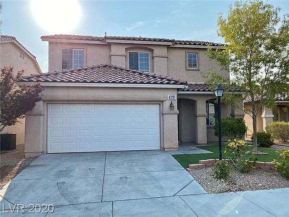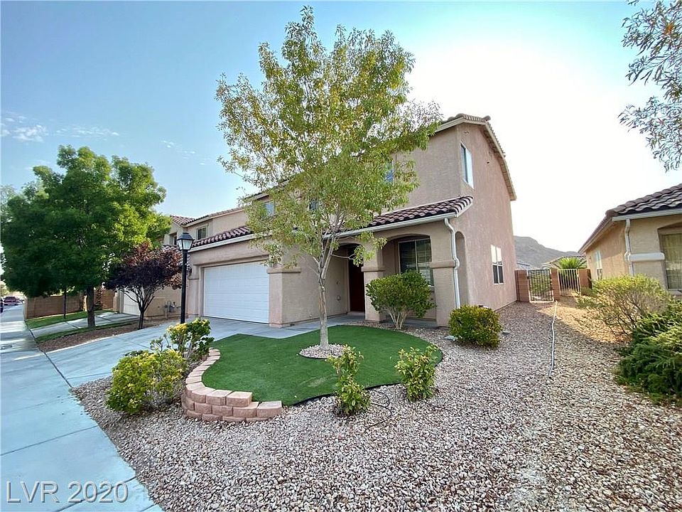 This beautiful 3 bedroom home features a living room, family room, and separate loft. Master bedroom has strip views, barn door for privacy to master bath, and 2 separate closets. Master bath has separate tub and shower and double sinks. Kitchen has a large pantry and five burner stove. Backyard features low maintenance synthetic grass, desert landscaping, fruit trees, and a shed. Epoxy flooring in garage. Gated community has a park and playground.