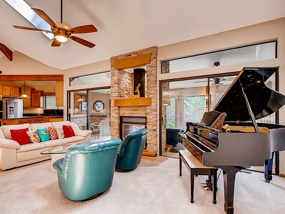 This custom brick home with contemporary design features four bedrooms and three baths. The pride of ownership shines throughout the 4,280 finished SF. The open-concept floor plan is made for entertaining with soaring vaulted ceilings that complement the elegant living room showcasing the two-way ledge stone fireplace and upper level loft for study. The remodeled gourmet kitchen presents a SS refrigerator, an island, granite counter tops, and abundant cabinet space. The main floor master suite w/ 5 piece bath and adjoining private spa makes for an optimal retreat. Guests can enjoy the peaceful sun room with fireplace and hot tub. Finished basement includes a media room w/ surround sound and wet bar, one bedroom and a workout room that can be easily converted into a bedroom, ¾ bath, and additional storage space. Revel on the extensive flagstone patio for those summer evening BBQs. New refrigerator (2017), newer furnace & A/C, newer roof & gutters. Cherry Creek schools.