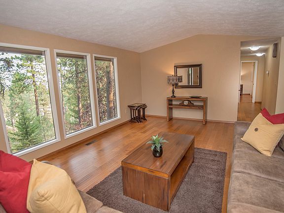Beautiful Spokane Valley daylight rancher sits nestled between the trees on 2.8 acres in CV School district. Every single room of this home features beautiful views! 5 bedrooms,3 baths, formal & informal dining rooms, two separate living spaces, 4 balcony style decks, 2 car garage with additional parking & RV Parking there is plenty of space for everyone. Gas forced Air, Central A/C, & both Masonry & Gas Fireplaces you are sure to be comfortable here. Stunning Hand Scraped Maple Sedona Hardwood floors.