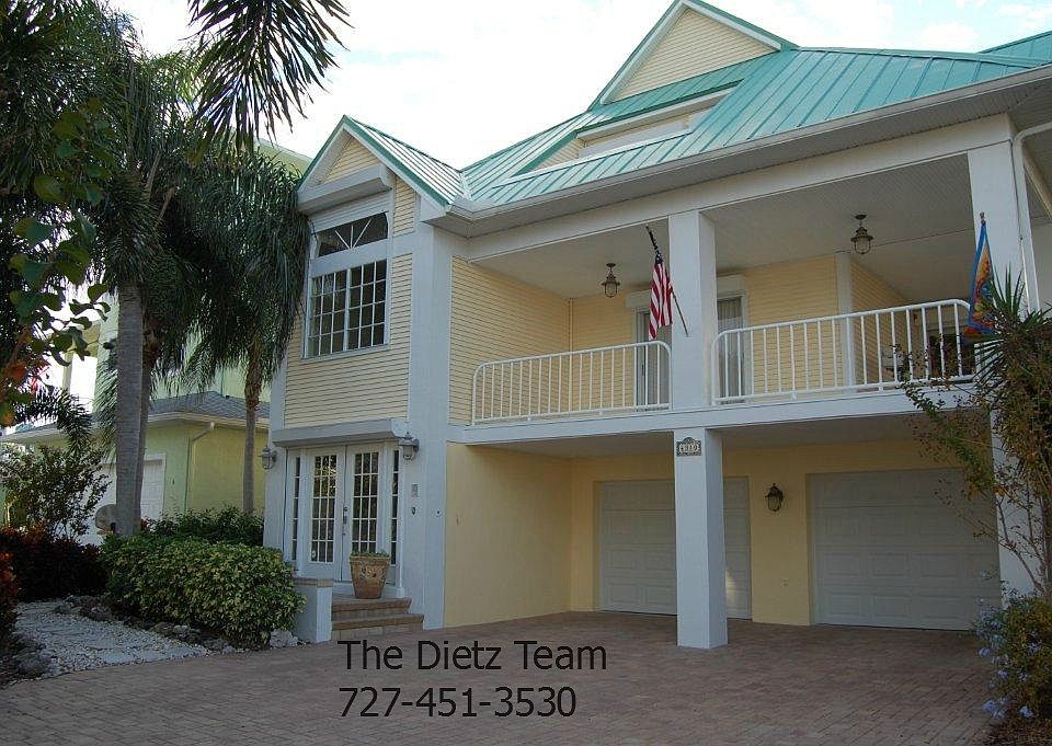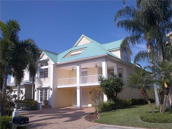 Stunning 5 bedroom, 3 1/2 bath 4,008 sq. ft. waterfront home with easy and quick access to Gulf of Mexico. Motivated seller recently reduced price by $50,000. This Key West style home has 3 bedrooms on the 2nd and 3rd floors + a 2 bedroom, 2 bath in-law suite or guest quarters complete with a 2nd guest kitchen. Three story home with 3 separate AC zones. Soaring 2-story Great Room with large sky lights. Balconies on 2nd and 3rd floor overlook the Gulf of Mexico + a 2nd floor balcony in the front of the home off the kitchen. Metal roof, aluminum siding, exterior electric hurricane shutters and indoor plantation shutters. The gourmet kitchen is completely updated with real wood cabinetry, granite counters, stainless appliances. An inviting in ground pool has a spillover spa and paver lanai. The oversized two-car garage has a separate workshop within. Dock with 10,000 lb. boat lift. Five minutes to beautiful Gulf of Mexico. This LIKE NEW home has been updated through out. Mint Model Condition.