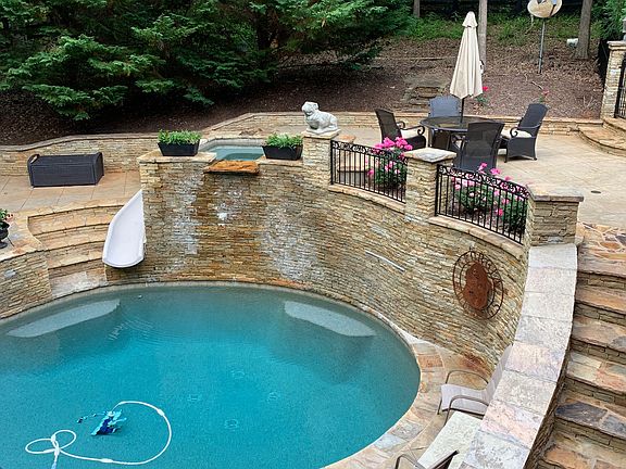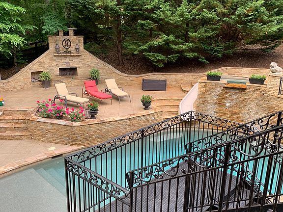 ONE OF A KIND! Wooded estate features stunning 4x brick home on 2.05 ac w/pool & massive detached RV garage. Plus NO HOA! HUGE InLaw/Teen Suite on upper level has sitting rm/office, full bath+700'sqft bedroom! Terrace level features Media Rm, bar, rec rm, bedroom & bath plus large unfinished area w/boat door. Pergola connects to outdoor oasis. Gorgeous, fenced backyard boasts pool w/tanning shelf & water features, spa, outdoor kitchen & gas fireplace. There's even a regulation Cornhole set up! 3 car garage plus add'l 46'x48' detached garage w/3 Huge Bay doors & RV plug.
