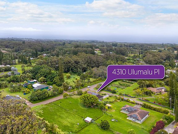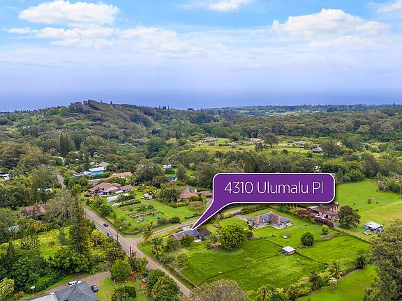 Welcome to 4310 Ulumalu Place, where tranquility is a part of every day. This pastoral 1.06 acre property is zoned for Agricultural use and is the cottage portion of a two lot CPR. Enjoy living in this sweet 3 bedroom 1.5 bathroom home while you cultivate the land. Nestled in nature, this home is designed with sustainability in mind. The 15 panel photovoltaic system has its own designated LG battery, dedicated 220 charger for electric vehicles and is owned outright. The split AC system keeps the property cool and dehumidifies the interior after rainy days. Stay connected in your peaceful perch with super fast fiberobtic cable internet. This property is offered furnished and move-in ready! Don't miss your chance to cultivate your best life on Ulumalu Place!