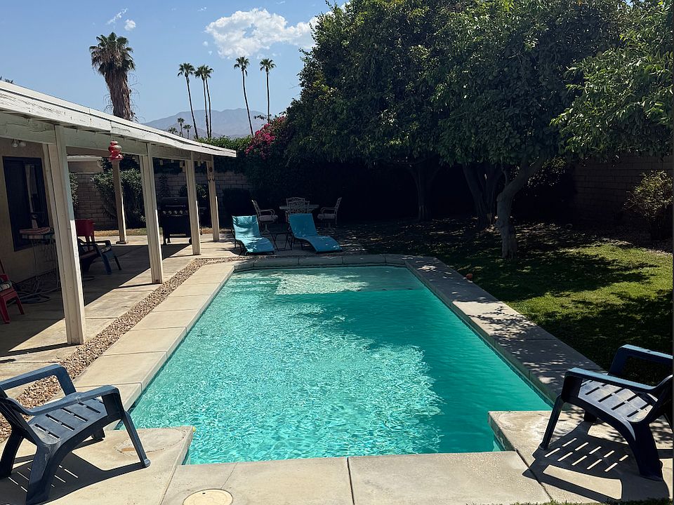 Calling all DOG LOVERS! No pet deposit! We love dogs! Amazing Seasonal Rental in the Heart of Coachella Valley Available Now! 43101 Balsam Ln, Palm Desert, CA 92260 Escape to your private desert oasis at this beautifully maintained fully furnished 3-bedroom, 2-bathroom home nestled in a private and quiet cul-de-sac in one of Palm Desert's most desirable neighborhoods. Enjoy sun-drenched days by the sparkling private pool with a tannng shelf! surrounded by lush palms and scenic mountain views, the perfect setting for relaxing or entertaining. Whether you're sipping your morning coffee on the patio or enjoying cocktails under the stars, this home delivers the quintessential Southern California lifestyle. Property Highlights: -Prime location just minutes from El Paseo shopping, top golf courses, restaurants, hiking trails, and world-famous Coachella & Stagecoach festivals -Fully furnished home with brand new beds, linens, bathware, and kitchenware. -New refrigerator and extra garage fridge. -Heated pool with a tanning shelf! -Covered patio and sun deck, bbq, large yard with various fruit trees with side lawn. -Located in a peaceful cul-de-sac for added privacy -Comfortable bedrooms with quality linens -Pet-friendly! Bring your furry friends along -Attached garage + ample driveway parking -Beautiful private pool with patio lounge area -Bright, open-concept living area with stylish furnishings -Bring your furry friends without worry! -All utilities + internet + wifi are included in the monthly rent Available as a seasonal rental, perfect for snowbirds, digital nomads, or anyone looking for a luxury escape in the Coachella Valley. The property is available for a seasonal rental starting September 1st, 2025. Tenants will enjoy a 5-7 month lease. (negotiable) Very pet-friendly. Mike Lonsdale MINT real estate DRE# 02275177