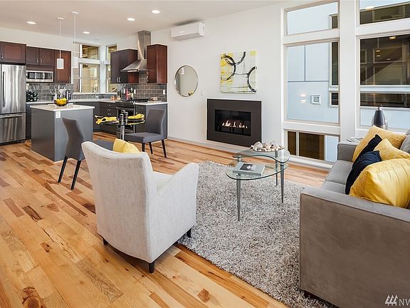 Fabulous new townhome in prime Fremont location. Every detail carefully selected and crafted, premium fixtures and finishes, gleaming hardwood floors, open floor plan, abundance of natural light, show-piece floating staircase, steel rails, A/C and gourmet kitchen. Upper floor master with walk in closet and spa-like bath. Roof top deck with astonishing clear views of the Seattle skyline and Lake Union. Off street parking included.