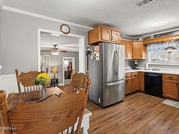 - Ceiling Fan(s), Crown Molding, Eat-in Kitchen, Primary Downstairs, Walk-In Closet(s)