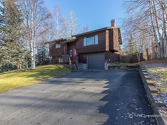 A Home For the Holidays! Natural beauty surrounds you in this distinct custom home located in Chugach Foothills. This 3 bed, 2 bath home is located on a quiet cul-de-sac in desirable manicured neighborhood. Spacious, fenced back yard w/large 2 tier deck. Newly renovated kitchen, complete w/stainless appliances. Soaring beam vaulted ceilings, open floor plan, large living room w/wood fireplace