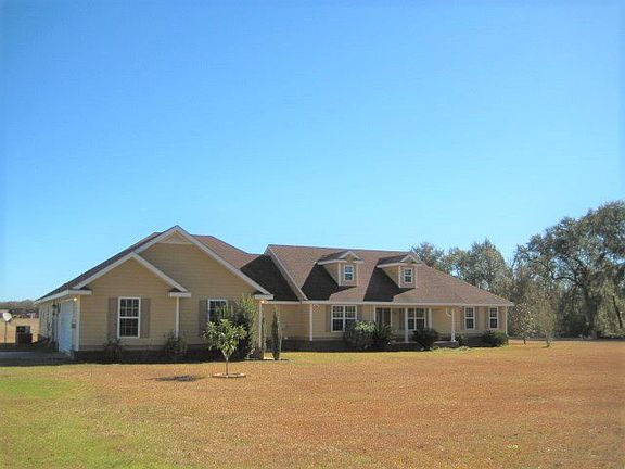 Located on 7 acres is this custom built 5 BR 4 full bath home perfect for horses or small farming. Wood floors in all living area with tile in wet areas. Kitchen has oak cabinets with large gas cook top and island with vegetable sink. Pantry with pull out drawers,breakfast bar & large breakfast room. Great room has wood burning fireplace that opens up to sunroom over looking backyard.Formal dining room and study/office is in the front of the house. Master bedroom is oversized with large master bath, tile shower soaker tub and walk in closet with built ins.Lots of closet space with most brs having walkins. Lots of storage. Over size garage and rocking chair front porch. Two Heat pumps.