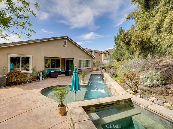Your Dream Oasis awaits in the Highlands Community! Welcome to your stunning single-story retreat that embodies luxury and relaxation. This exquisite home, built in 2015, features a private backyard oasis that will take your breath away. Imagine unwinding in your sparkling lap pool or soaking in the large spa, surrounded by serene landscaping and no rear neighbors—perfect for ultimate privacy. The grand entrance sets the stage for the elegance and sophistication that flows throughout. The open floor plan is designed for entertaining and cozy family gatherings, with beautiful plank flooring and custom wood shutters. The heart of this home is the expansive kitchen, complete with a large center island, stainless steel appliances, granite countertops, and an abundance of cabinetry. It seamlessly connects to the inviting family room, where a cozy fireplace and entertainment niche create the ideal space for relaxation and connection. Retreat to the spacious primary suite, with direct access to the backyard, an ensuite bathroom with dual vanities, a soaking tub, a separate shower, and a generous walk-in closet. The flexible bedroom layout includes a separate wing with its own full bath, making it perfect for multi-generational living, guest accommodations, or a private home office. Nestled on a quiet hillside, this home offers a remarkable level of privacy and tranquility. The covered outdoor space and custom concrete patio is perfect for hosting gatherings or enjoying quiet evenings under the stars. Additional highlights include a 3-car garage with epoxy-sealed floors, a fire-sprinkler system for safety, and fully paid off solar. This is a rare opportunity to own a turnkey home with exceptional features in a highly desirable location. Don't miss your chance to experience the lifestyle you deserve—come see it today!