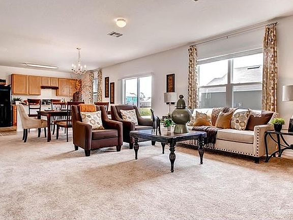 UNDER CONSTRUCTION - The Galen - This modern design, two-story plan feels open and spacious as soon as you walk in. The large open-concept downstairs includes a kitchen that overlooks living room and dining room, a powder bathroom, under-stairs storage closet, and an outdoor patio. The kitchen features a large center island perfect for bar-style eating or entertaining, a walk-in pantry, and plenty of cabinets and counter space. The well-appointed kitchen comes with all appliances including refrigerator, built-in dishwasher, electric range, and microwave hood. The two-car garage opens into the front hallway. Upstairs, the expansive owner's suite is 20' x 13' and includes a large walk-in closet, en suite bathroom with double vanity, and separate linen closet. Three other bedrooms share a second bathroom with double bowl vanity and an additional closet on the upstairs landing provides even more storage space. The laundry room is located upstairs for convenient access and comes equipped with included top load washer and dryer.
