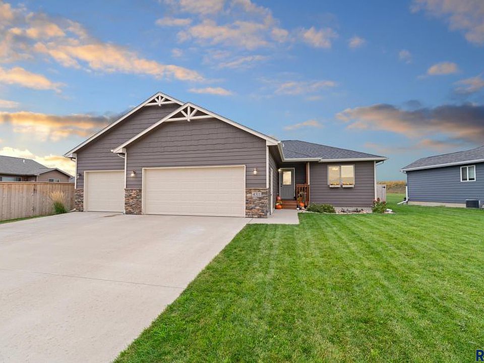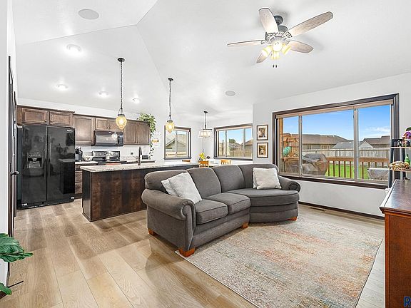 Ready to call your new home in northwest Sioux Falls! Upon entering you'll appreciate the large windows and lots of natural light, vaulted ceiling, and soft color pallete throughout. An open concept living space, dining room with door to the deck, inviting kitchen with a large island, pantry, rich cabinetry, and handy laundry/drop zone. The main level is complete with the master bedroom with a walk-in closet and en'suite, 2nd bedroom, and a full bathroom. Step down to the spacious family room perfect for movie night, 2 additional nice-sized bedrooms, a 3/4 bathroom, and mechanical room. Top it off with a 3 stall garage, mature landscaping, and a fully fenced expansive backyard. New roof, privacy fence, interior paint, flooring and lighting. Convenient location and easy access to the interstate!