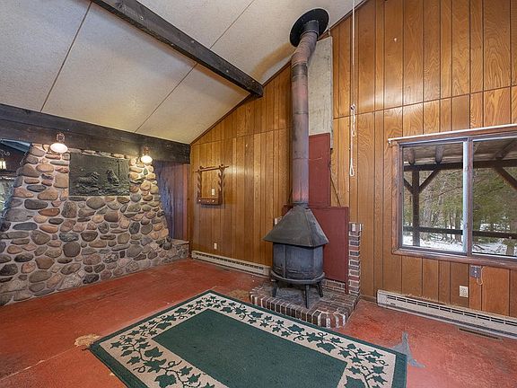 - Fireplace features: Free Standing, Stone, Wood Burning