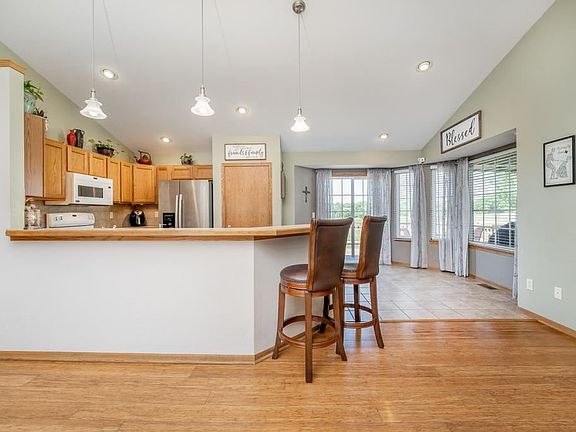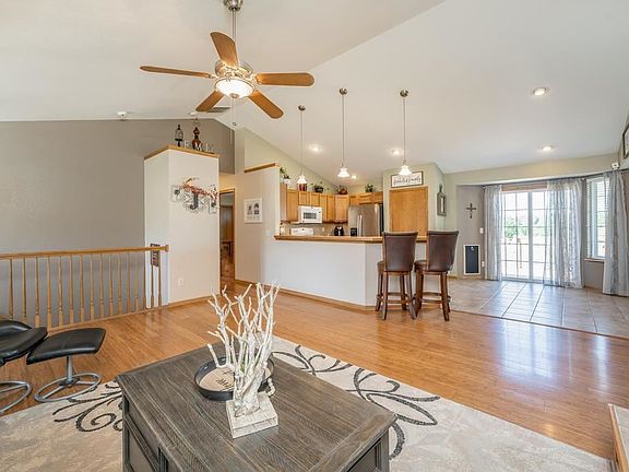 Welcome home! This 5 bedroom, 3 bath home is located on a great, Quail Ridge golf course lot and is ready for you! The desirable floor plan offers an open kitchen that overlooks the dining room and the living area with sliding glass doors to the deck. There is a great master suite with a walk-in closet, private bath, main floor laundry, a second bedroom with newer wood laminate flooring, and second full bath on the main floor as well. The finished basement offers three bedrooms, a full bathroom, and a large rec room. Lots of space to spread out and enjoy! The three car garage is perfect for your golf cart needs! Sprinkler system has just been opened for the spring and summer and there is even an underground fence. From the backyard you can hop right on the cart path for a great day of golf, if desired. Wonderful community and minutes away from shopping, restaurants, and businesses. Enjoy the sunrises and sunsets from the gorgeous views of the front porch and back deck. Don't miss out on this great home!