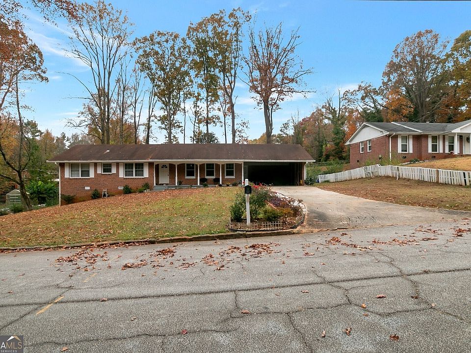 This wonderful 4-sided brick ranch nestled in a quiet and established neighborhood welcomes you home with a rocking chair front porch. Step inside, and you'll be greeted by a spacious living room flowing into an inviting eat-in kitchen. There is ample counter space and room for a large dining table, making it the heart of your home. All this connects to a lovely family room accentuated with a fireplace for cozy cold weather. All the 3 generously sized bedrooms and 2 full bathrooms down the hall ensure comfort and convenience. As you explore further, you'll find the partially finished basement offering extra space and limitless potential for your creativity. And here's the best part - there are no HOA or rental restrictions. Level driveway and oversized 2 carports. Close to everything including Hwy 78 & I-285, Shopping, Dining, and Stone Mountain Park. Don't miss out, schedule your exclusive showing today.