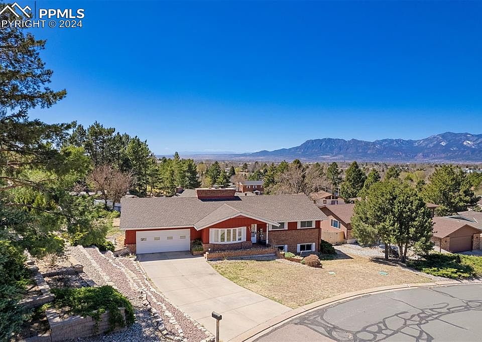 Welcome home to this ranch style home located in the popular Bridlewood neighborhood. Stunning mountain views off the backside of the home. With a wide and sprawling layout, you will love the large windows and open floor plan. With three bedrooms and two baths on the main level, the home is perfect for everyone. The finished walk-out basement has an additional bedroom, bathroom, a second living space or home office and a generous sized laundry room with enough space for a craft area. Imagine sitting in the comfort of your sunroom, surrounded by the warmth of the indoors while gazing out at majestic Pikes Peak in the distance. The combination of the natural beauty outside and the cozy atmosphere inside will create a perfect sanctuary for relaxation and enjoyment. Whether it's the changing colors of the seasons or the peacefulness of snow-capped mountains in winter, the view undoubtedly enhances the charm and appeal of this home. It's a wonderful blend of natural beauty and comfortable living, providing a serene retreat. An oversized two car garage, two wood burning fireplaces for those cold winter nights, new electric panel, newer water heater, new garage door opener, fully fenced backyard and a great cul-de-sac setting. The red brick exterior adds warmth and charm to the home's facade, creating a welcoming and timeless aesthetic. This home is move-in ready and waiting for you to make it your new home.