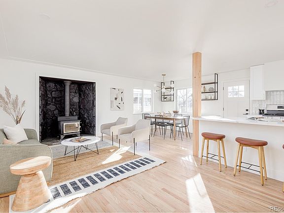 First custom remodel to go on the market by Goodhouse (formerly HutchHouse). Goodhouse is a local boutique firm specializing in Real Estate, Design and Development, bringing over 2 decades of experience to our clients and projects. This high-end custom remodel was professionally designed by our in-house architecture and interior design team and is evident in the thoughtful details, custom built-ins, functional floor plan and designer finishes. This single-family brick home is a perfect balance of honoring the character, charm and warmth of a historic home while introducing a modern, functional floor plan and finishes. You are welcomed with a cozy front sitting porch and oversized windows that floods the interior with natural light. The open living/dining room and kitchen blend seamlessly with the warmth of original, refinished hardwood floors, a wood burning stove, architectural molding and new custom built-ins - perfect for entertaining. The thoughtful kitchen design is spacious with quartz countertops, open shelves, a custom range hood, oversized peninsula with 3 bar stools and plenty of storage. The home features a rare layout with 3 bedrooms all on the main level, including a private primary suite with a custom built-in closet and en-suite bathroom with a vogue green double vanity and Carrara marble floors. The 7'-6" ceiling height basement includes 2 additional spacious bedrooms, a large family room, full laundry room and a large storage room! The private, oversized backyard includes a new cedar fence, back patio and mountain views. There is a 1 car garage and an off-street parking pad for 1 additional car. Located on a quiet, neighborhood street in Englewood you are within walking distance to the neighborhood park and restaurants and coffee shops on South Broadway! Welcome to your Goodhouse!