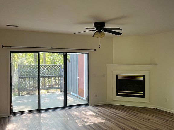 Now available, move into this cozy 2-story end unit townhouse. Located in the sought-after Leesville school district, this quiet community is just what you've been searching for! A well-maintained 1,350 sq ft townhouse boasts a large living room with gas fireplace, spacious vaulted ceiling primary bedroom & bathroom, and ample parking and storage. It features new hardwoods, a fresh coat of paint throughout, and an outdoor patio overlooking a private, wooded backyard. Nestled in North Raleigh this home offers both serenity and convenience. Close to shopping, grocery stores, restaurants and bars including Harris Teeter, Target, Lynnwood Grill, House of Hops, and many more. The neighborhood has sidewalk lined streets and is within 1 mile of Lake Lynn and Shelley Lake walking/biking trails. Centrally located to Crabtree Valley Mall, REX hospital, PNC Arena and so much more. With close access to interstates I-440, 540 and right off Hwy 70 making for an easy downtown Raleigh, Cary or RTP commute. You'd never imagine this gem of a neighborhood to be in the middle of a popular, well-located part of the city. BRAND NEW: -Hardwood floors -Paint -Toilets 12-month lease required. Utilities paid by renter.