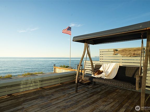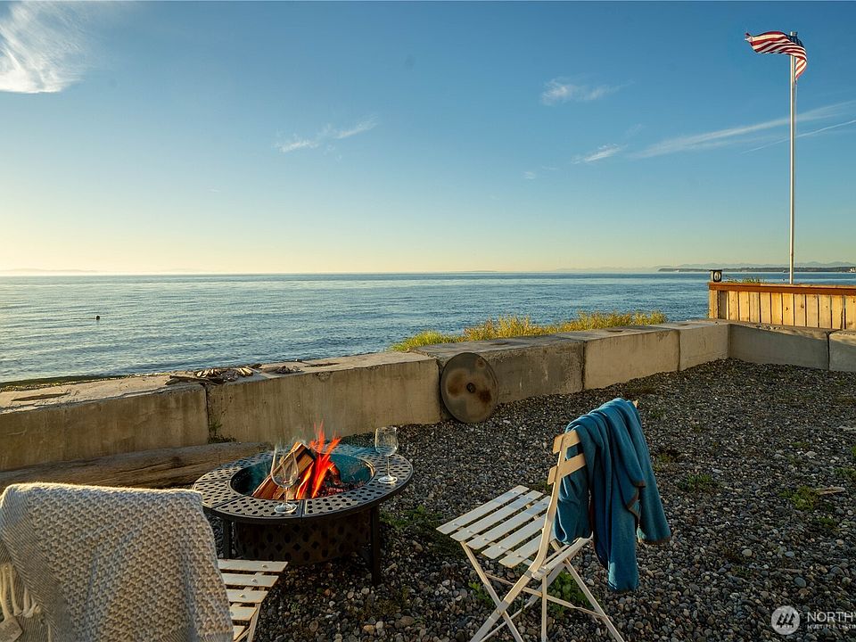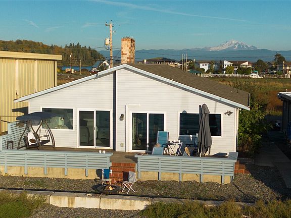 The ultimate Pacific Northwest home location on Sandy Point Shores - expansive display of Georgia Strait to the west w/spectacular sunsets over Canadian Gulf Islands to the north & San Juan Islands to the south. A full view of Mount Baker to the east overlooking wetlands across street - sunrises! A captivating coastal retreat, waterfront beach currently 2 AirBnB spaces, a total of 1,597 SF: 3 BR and 2.75 BA. Large kitchen w/ sizeable kitchen island for the chef & entertaining. Paneled, vaulted ceilings, fireplace, tasteful finishes make this the most enjoyable living space imaginable. Improved waterfront w/ 382 SF deck & 50 feet of beach/solid sand waterfront w/ a bulkhead. Both main home and accessory are turnkey. Fee simple owned land.