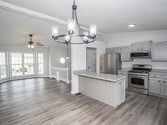 - Lever Faucets, Shower, Separate Dining, Entrance Foyer, Kitchen Island, Cathedral Ceiling(s), Open Floorplan