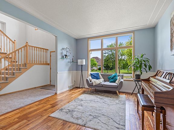 As you enter, you are greeted by beautiful hardwood floors throughout the formal living room, dining room, and kitchen. The kitchen boasts granite countertops, backsplash, stainless steel appliances, and an eat-in casual dining area. The main floor also includes a convenient half bath and an informal living room with a wood-burning fireplace, perfect for cozy evenings. Upstairs features all-new carpet and the large master suite is a private retreat, complete with a five-piece bathroom featuring a jetted tub, shower, new skylight, and a walk-in closet. Two additional bedrooms and a full bathroom complete the second floor. The basement offers a spacious family room with a small wet bar and gas-burning fireplace. It also includes two bedrooms, a full bath, and a laundry room. The furnace was replaced in 2022, and new roof in 2024. Step outside to the wonderful backyard that backs up to a recreational path. The large lot includes a basketball pad, a freshly stained deck with a pergola, and a privacy-screened area wired for a future hot tub. The entire home is wired for sound, enhancing your living experience. Additional features include a finished four-stall garage with a floor drain and heat, providing ample space for vehicles and storage. Don’t miss the opportunity to own in the Timberline neighborhood!