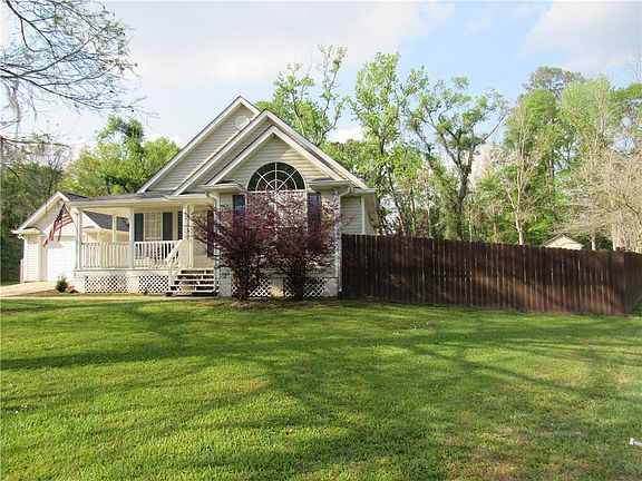 Precious Cottage featuring wrap porch, open kitchen and dining with farmhouse shelving & stainless appliances. Living rm has vinyl plank floors and wood burning fireplace. Lots of windows and charm. Home has security system, smooth top range, walk in closet and double sink vanity in primary. Sit on the new deck or wrap front porch and enjoy the large back yard. You won't want to miss out on this one! Flood Insurance is $459 per year!