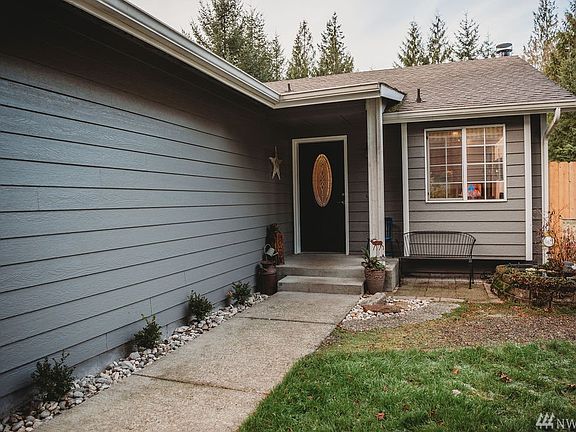 Country comforts abound in this lovingly renovated home. Farmhouse inspired kitchen remodel with deep.sink, subway tile and laminate flooring that extends throughout the great room., efficient pellet stove, 3 bedrooms, 2 full baths, freshly updated. 2 car garage gated access to fully fenced back yard. Extensive rockery terraced back patio and park like yard.. 2 out buildings one of which is fully finished and has so much potential. River front community nestled in the cascade mountains.