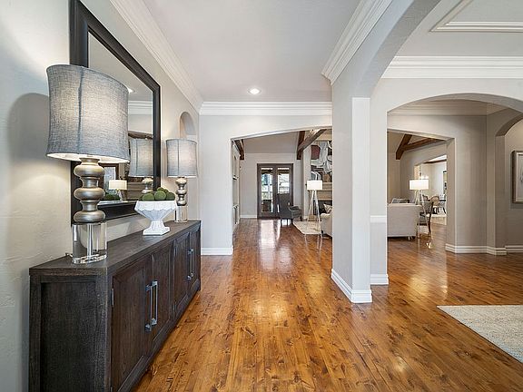 Situated on a corner lot in gated Wind River this home is stunning inside & out! Gunite, heated saltwater pool, covered outdoor living with wood burning fireplace + outdoor kitchen. Incredible master suite with bonus area; gorgeous updated ensuite. Recent interior paint. Intricate millwork, rich hardwoods; beautiful vaulted great room with hand-hewn beams. Spacious bedrooms each with a walk-in closet and access to full bathroom. Large game room and home theater upstairs. Jenks SE schools.