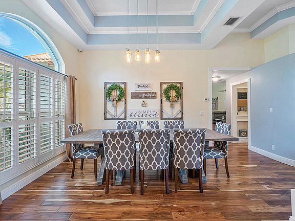 Welcome HOME! This property is sure to check off every box of your wish list! Upon entering the foyer you are greeted with 12 ' ceilings, the warmth of acacia hardwood floors , natural light with the amazing view of your pool & back yard. Large kitchen that opens up to the family room with breakfast bar that can seat up to 8, tons of storage incl walk in pantry & wine/prep bar. *Also equipped with gas stove! The backyard is absolutely AMAZING! Have I mentioned that this home is perfect for entertaining?! .72 acres of your own private paradise! Enjoy relaxing in your saltwater pool , then walking over to your Tiki w/ bar & outdoor kitchen . In the evening, stroll over to the fire pit area & enjoy watching the sunset. The home has Impact windows, generator and hurricane rated garag Spacious layout offering 2901 sq ft under air, split floor plan, good sized rooms. On one side is master suite , half bath and current home gym, 3 spares on the opposite side of the home. The Master suite offers a large walk in closet with built in shelves/storage & a gorgeous bathroom with a shower and separate claw foot stand alone tub,his/hers vanities. Home truly is move in ready! Fantastic community made up of 251 homes conveniently located close to local shops, schools, access to local schools, and hospitals. Low HOA fee-Community offers tennis/basketball courts.