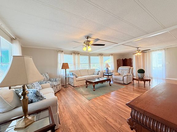Looking for a spacious, fully updated 3-bedroom, 2-bath home just steps from the Harmony Hall pool, fitness center, and clubhouse? This beautifully remodeled home offers a stunning waterview where you can relax and enjoy Florida wildlife from your own backyard. Inside, you'll find a gorgeous, modern kitchen featuring abundant cabinetry and counter space-perfect for cooking and entertaining. Luxury flooring runs throughout, and both bathrooms have been tastefully renovated with high-end finishes. The open-concept living and dining area is among the largest you'll find in Colony Cove, offering an airy, inviting atmosphere ideal for gatherings. Additional highlights include a cozy side porch, extra-long driveway that accommodates up to three vehicles, and a convenient location near community amenities. Lot rent is $1,425/month. Nestled along Florida's Gulf Coast in desirable Manatee County, Colony Cove is an age-qualified, resort-style community designed for active living. Residents enjoy a private marina with dry and wet slips, five clubhouses, six heated pools, pickleball and tennis courts, two fitness centers, billiards, dog parks, and endless activities. Located in the charming town of Ellenton, just minutes from Bradenton and Sarasota, you'll have easy access to world-class beaches, dining, arts, and shopping.Experience coastal living at its finest-schedule your showing today! 55+ age restriction.