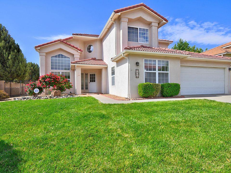 Seller offers to pay 3% of sales price towards buyer closing costs. One owner home has refrigerated air conditioning, family room open to kitchen with granite counter tops. Great light throughout the home. Formal living and dining with 2 story ceiling. 4th bedroom is downstairs and has 3/4 bath. Game room is 10x20 approximately could be 5th bedroom but there is no closet. Big primary bedroom with huge bathroom has separate shower & garden tub.Deck with mountain views off of primary bedroom. Ceiling fans throughout the home. Private backyard backs up to flood control ditch and paved walking trail. Covered patio and large flagstone open patio area. Recent stucco. Convenient neighborhood close to shopping and Paseo Del Norte .