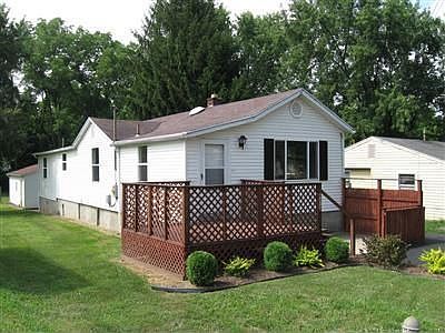 Very Nice Roomy Vinyl-Sided Ranch-style home on a partial BASEMENT. 2.5 Car Detached GARAGE is Vinyl Sided. 1180 sq ft. per PRC. Very Spacious living room features nice carpet. UPDATES: 2009 KITCHEN Wood Cabinets, Counter, Sink, Faucet, Fan in attic. 2008: BATH: Commode, Sink, Tub, some plumbing replaced, Driveway. 2007: Vinyl Siding on house/garage, Replacement Windows, Drywall, added insulation, Garage Overhead Door, Opener. 2006: Water Heater 2004: Gas Furnace. 2000: Roof on house, complete tear-off and New Shingles. Recently the Exterior Doors were replaced. 2 Walk-in Closets in largest bedroom. One of them is large enough if someone wanted to eventually add a 2nd bath. Commode in basement works. Front Deck and patio. Partially Fenced Deep Backyard. (Seller has some items in house but Buyers will have occupancy at closing).