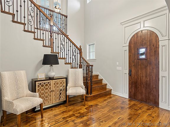 Quality and Craftsmanship throughout. Soaring Ceilings, Grand Staircase and Beautiful Hardwood Floors. Enjoy private tastings in the Wine Room. The Chef's Kitchen opens to Living and Dining Rooms. Relax Poolside by the Stone Fireplace perfect for 4-season entertaining. Secluded Home Office with plenty of natural light. Primary and Secondary suites are located downstairs. Two additional bedrooms upstairs adjoined by a Pullman bath. Over-sized closets and plenty of extra storage. Fully loaded Game Room complete with 2nd Office and Theater. Bixby Schools! Flexible floor plan for all stages of life.