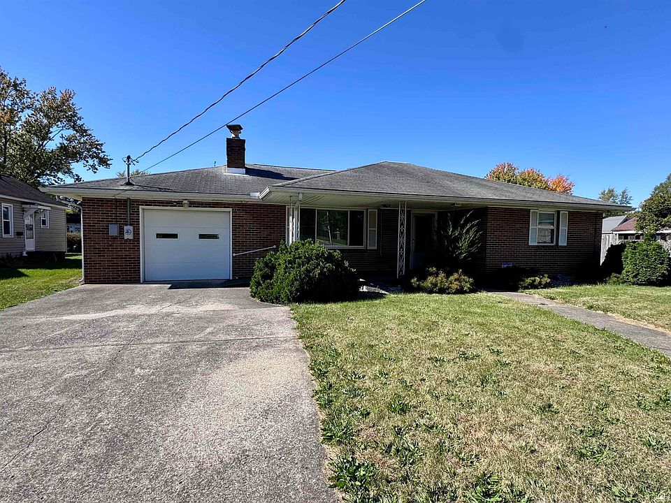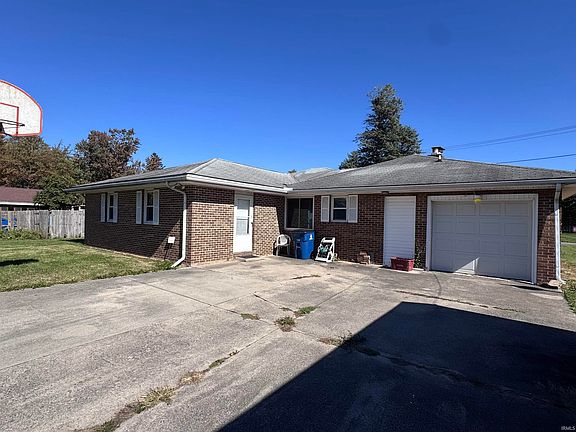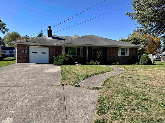Brick ranch home located across from IWU. Two bedroom, 2 two bath. Replacement windows, wood burning fireplace, some hardwood under carpet. Total electric. One car attached garage with front and rear overhead doors and utility sink. Garage has heat with washer and located there.