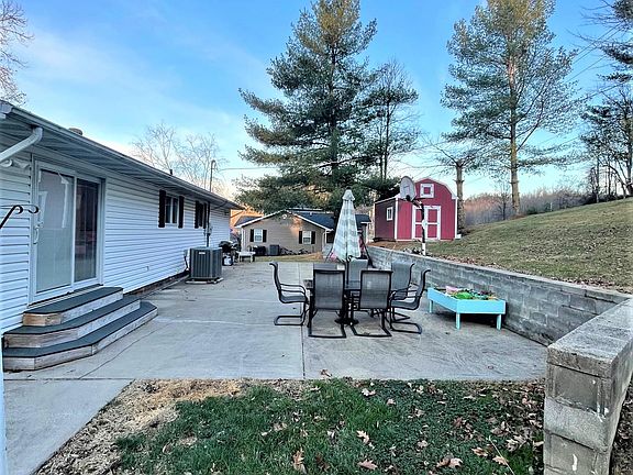 Celebrate every day in this spacious and pretty split-foyer design home that overlook a beautiful area of privately owned property across the road and you get to enjoy it all!  This 3 bedroom, 2 bath home has great size rooms including a main floor living room that joins an open dining area; kitchen has updates including newly painted cabinetry, renovated counters and custom island.  Dining room has french doors to HUGE patio area for an incredible amount of entertaining and recreation.  All bedrooms are delightfully roomy and main floor bath has 2 entries.  Lower level has open foyer area, family room with fireplace including gas logs; small office or excercise room; plus another large bath.  Garage is ultrar roomy and access is very easy from inground pool into bath on lower level.  Pool is fully fenced for safety.  There is a large storage building and it's also a cute one!!   This home has been well maintained by current and previous owners and now it's ready for you!  Schedule your private showing quickly so you won't miss out!