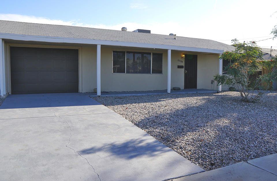 Two bedroom, two bathroom single family house for sale in the popular Palm Desert Country Club community. This home has been refreshed with paint, flooring, and several light fixtures. The well-appointed kitchen comes complete with all appliances. The carport has already been converted into a one car garage, while an interior laundry room with additional storage area, washer, and dryer, enhances convenience. The spacious East facing backyard boasts a covered patio, providing an ideal setting for relaxation and potential for a pool or ADU. Low HOA dues of $390 per year give access to community pool and clubhouse.