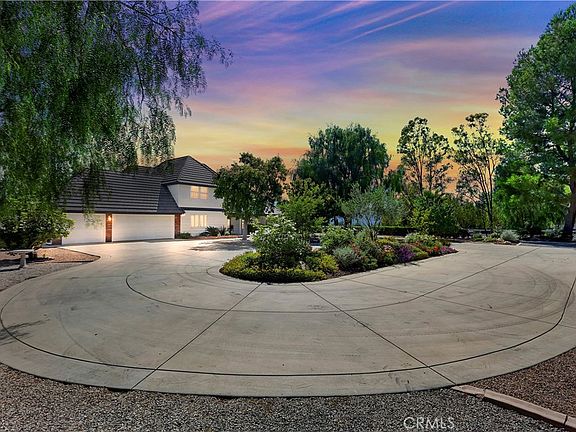 Privacy and views in this stunning Santiago Ranchos home set on a prime 1.4 acre hilltop property! Located in Temecula’s most highly desirable community. The exterior landscape on this property is spectacular with so many impeccably maintained trees, and plants full of color and vibrancy....your own private haven! Long gated driveway up to the gorgeous home with an impressive circular driveway and park like setting. Seller has recently put in approx. $450,000 into the property. The house is 3350 square feet with 4 bedrooms (including one on the main floor), small office, 3 bathrooms & 3 car garage. Open kitchen with gorgeous granite counters and backsplash, modern white cabinets, Bosch stainless steel appliances & a walk-in pantry. Family room has a cozy brick fireplace and impressive crown molding. Spacious master suite with great views and a very large walk in closet. French doors from the living room that lead to the amazing backyard. Seller just completed an absolutely incredible outdoor entertaining & kitchen area. Impressive stacked stone island with top of the line accessories: massive Alfresco barbecue grill, burner with flat top grill, custom pizza oven, fridge and sink. A stacked stone matching wall was added that houses an 84 inch n outdoor TV enclosed in a custom cabinet. A second TV added on the adjacent wall for the real enthusiasts, so you don't have to decide which game to watch. What a place to entertain and use your culinary skills with family and friends to truly enjoy the Temecula lifestyle and California weather. The backyard has extensive flagstone decking for added appeal, a cozy firepit, lush green grass and plenty of seating areas. Panoramic views to relax and take in the spectacular Temecula sunsets. Seller added meandering paths with stately walls through a fruit orchard...so many varieties with over 40 fruit trees. Take a Breakfast Walk every morning! Property is completely fenced with newer fencing, natural gas and public sewer, no septic tank. Home has a new water filtration system & ADT security. Such a private and serene setting yet so close to all that Temecula has to offer. Just a few minutes to Old Town Temecula and close to award winning Temecula wineries, shops, schools, restaurants and so much more. Low tax area and no homeowners association. So few homes become available in this community. Come take a look and see all this special home has to offer!