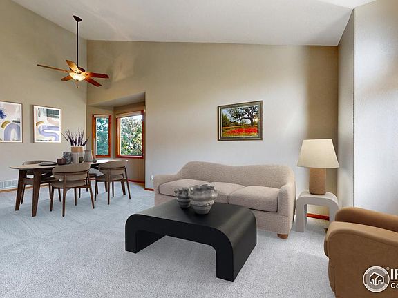 Welcome to your serene retreat in Southwest Fort Collins! This beautifully maintained home offers a peaceful atmosphere with a neutral color palette throughout. Enjoy low electricity bills thanks to a large solar panel system. The spacious floorplan is designed with comfort in mind, featuring oversized bedrooms, abundant storage, and a large pantry.The huge heated and insulated garage provides ample space for vehicles, gear, or your dream workshop. Step onto the elevated deck off the primary bedroom, surrounded by mature Autumn Purple Ash and Locust trees, creating a cozy, treehouse-like feel. A charming courtyard bordered by pines and warm morning sunlight is ideal for a quiet coffee in the morning. Gather around the gas fireplace or stay cozy with the patio heater on cooler nights.Located in a quiet cul-de-sac, this property is near local schools, walking trails, Spring Creek Trail, and Westfield Park, offering both tranquility and convenience. Don't miss this unique blend of nature and neighborhood living. Schedule a visit today!