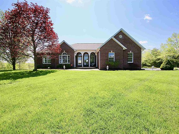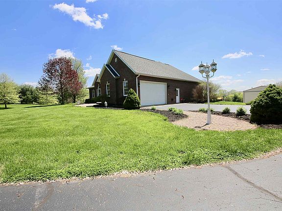 This incredibly beautiful house sits on a 5.54 acre lot in a beautiful country setting. This brick, custom-made ranch is Amish built with careful attention to detail. Has a 2-sided fireplace in the living room. The home features Anderson windows, beautiful hardwoods, and granite countertops. The split main level bedrooms feature a Jack & Jill bath. The master suite has a luxury bath. The home has a very functional floor plan over a fabulous, finished, walkout basement. This wonderful home is perfect for entertaining. The spacious deck/balcony is complete with natural gas for your gas grill. The walkout lower level is perfect for family and friends as it has a second kitchen, recreational areas, plus an entertaining media room! The side-load garage is nicely over-sized. The first rate, pole barn is heated and cooled, has a washer/dryer hookup and even has a full bath. This 30 x 50 building can serve many purposes and could be a car enthusiast's dream!!