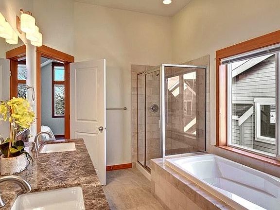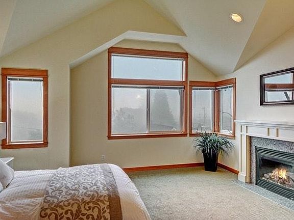 Repainted and recently refinished all floors with solid oak (all carpet has been removed). Viking Appliances in kitchen, granite finish, top floor master suite including Air Conditioning (cooling), Fireplace and walk in robe. Radiant floor heating throughout, fireplace on main level as well. Views of sound and Olympics from master suite and lounge area. 1740sq ft large 3 bedrooms with bonus 4th room. Walking distance to great shops and restaurants and best schools in the county. Short walk to water taxi to downtown, bus stop 2 min walk.