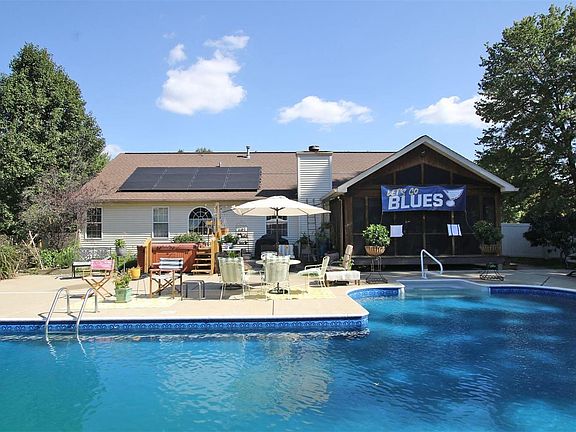 The Manors of Woodfield has this beautiful ranch home on more than an acre is a great place to entertain and raise a family. The large inground pool. A very nice screened in back porch overlooks the great patio area around the pool. Cathedral ceilings and a gas fireplace in the great room make for a vey open floor plan with lots natural light. The eat in kitchen and breakfast bar for casual meals. A separate dinnig room for fine dining. The master suite with double door entry for a great entrance. An office area to work from home. The finished lower level has a huge family room with a wet bar area for entertaining. The exercise room and bonus room with a closet and a full bathroom and large storage area help fill out the lower level. The 3 car garage makes for plenty of room for vehicles and equipment. Buyer to verify all information. You can enter the subdivision from either Frank Scott or from Old Collinsville rd for easy access. Showings start Saturday June 10th.