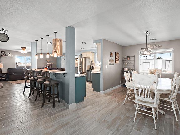 Beautiful Ranch Home with Permitted Workshop! This home offers 4 large bedrooms and two full bathrooms. There is a family room, formal dining room, and a living room with a beautiful flag stone and tile fireplace, perfect for the winter months. The open concept kitchen has been completely renovated with new cabinets, quartz counters, subway tile backsplash, recessed lighting, and stainless steel appliances. New tile flooring has been recently installed throughout the living spaces making the home look bright and open. There is a fully permitted 1750 sq ft workshop with 10x10 and 12x12 garage doors. There is electrical with 110 and 240 volt circuits as well as, an installed air compressor, perfect for all your projects. The workshop has been pre plumbed for water and sewer. There is also a large storage shed, a standard two car, and huge RV access with newly poured concrete all the way to the workshop. This home has it all! Call for your appointment toda