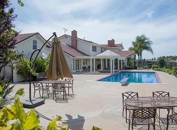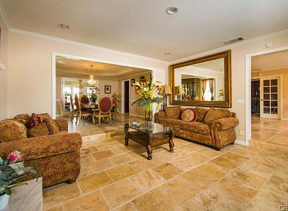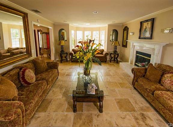 Chaparral Estates gated semi-custom home on 3.35 lush acres w/panoramic city light views & over 100 different fruit trees & circular driveway! Grand entrance tile foyer with crystal chandelier & circular staircase, new travertine tumbled tile & marble wood burning fireplace, formal dining room & designer light fixtures & sitting room with rich custom tile flooring & crown molding with french doors that lead to an entertainer's yard/patio area and huge private Pebble Tech Salt Water pool & built-in BBQ. Main level has separate guest/in-laws quarters with own Jack and Jill bathroom, weight room & craft laundry area, theater/viewing room and seating, game room & gourmet kitchen with European mocha finish cabinetry with Thermador cooktop, two Sharp ovens, & sub-zero built-in refrigerator, granite counter tops & large pantry with custom built-ins and butler's pantry! French doors lead to amazing views of the hills. Second floor includes the picture perfect master suite bedroom with new Whirpool Bear Foot Claw tub, new plush carpeting, fireplace, & over-sized closet. Master bath has double sinks and balcony to enjoy the views. The backyard is impeccably landscaped & plenty of land to enjoy all the fruit trees & extra large garage with plenty of room.