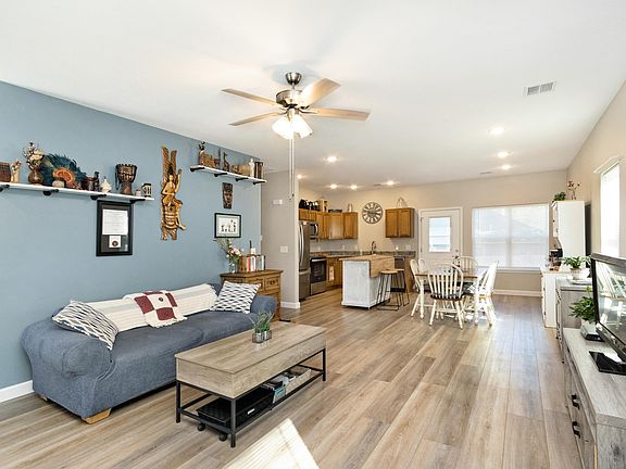 Welcome to this stunning, well maintained 3 Bed 2.5 bath zero-entry one and one half story, offering an open-concept floor plan with so much natural light. Situated on a beautifully manicured corner lot, the lush green lawn and inviting front porch create the perfect setting to relax and enjoy cool fall evenings. Inside you'll find a spacious living area ideal for entertaining, along with a primary suite featuring a walk in closet and private bath for your own personal retreat. This home also boasts a convenient first floor walk-in laundry room adding to its exceptional layout and easy living design. Well maintained wooden storage shed. Oliver Brown Elementary School. Located just off of Green Valley Road with easy access to 24 Hwy