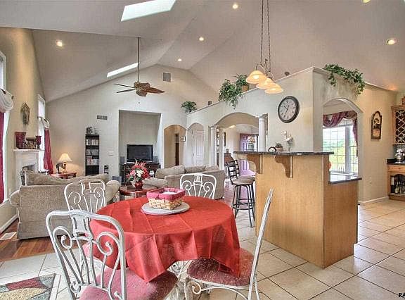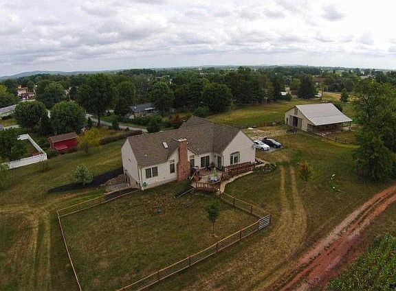 Gorgeous rancher with open, flowing floor plan! Quality materials throughout including cherry wood floors & custom cabinetry! Archways & vaulted ceilings too! Master Bath has an attached walk-in closet. Huge basement is almost finished for future space. Fenced in 5 acres & 4 stall oversized barn! Gorgeous setting with country side views!