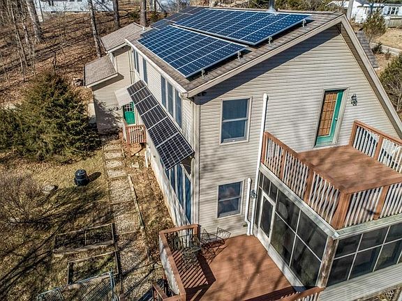 This beautiful 18-acre property is ideally situated, backing up to a 300-acre IU Nature Preserve, providing privacy and exceptional scenic views only a half mile walk to Lake Monroe. The amazing 2400 SF Cape Cod style, energy efficient home was designed for very low operating costs and a small carbon footprint. There is optimal solar orientation of the house with 17 south facing windows with summer shading provided by a solar panel awning and roof soffit over-hang. The solar panels can provide 100% of the energy needed with net metering applicable until 2047. There is a high efficiency Mitsubishi heat pump system providing heating and cooling, hybrid water heater, a wood stove, ceiling fans & an abundant number of Anderson 400 series windows which bring in plenty of natural light. [See attached documents for additional features and construction details of this home.] The main level of this home features 9 ft ceilings, hardwood floors, living room, open family & dining room area, a bedroom, full bath, and laundry/mud room. The kitchen features a tray ceiling, a breakfast bar & a built-in pantry. The family room has a Hearthstone soapstone wood stove & large windows overlooking the woods. Off the family room is a screened porch w/access to the rear deck & the backyard with a turtle & frog pond. The 2nd floor has a landing room for a small desk & walks out to the upper deck with beautiful, panoramic views. The master bedroom has a walk-in closet that opens into the shared full bath with a tub & separate shower. A large 3rd bedroom has a removable partition dividing it into 2 separate areas. A huge bonus room offers endless possibilities. The 24x24 garage has insulated 16x8 overhead doors on the front and rear of the home. The walk-in crawlspace can be used as a work room and/or as additional storage space. Hi-speed fiber optic internet & home security access through Smithville Fiber. This is a one-of-a-kind property offering an opportunity to live in a natural setting in a lovely, efficient home near Lake Monroe & Bloomington.
